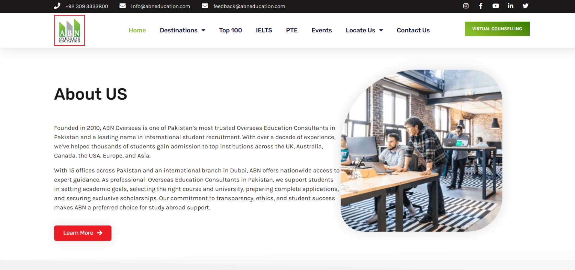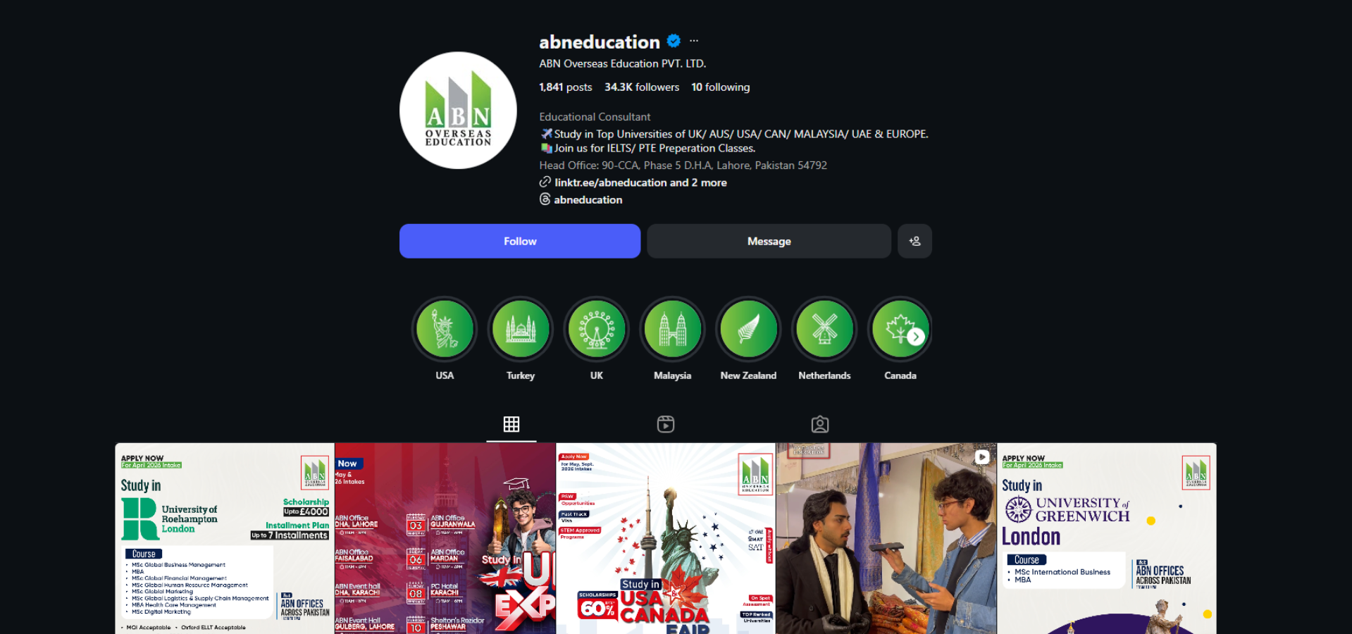ABN Education is a professional education consultancy firm operating in Pakistan primarily focused on helping students pursue international education opportunities and positioned itself as a trusted academic partner. This institute provides end-to-end guidance for students planning to study abroad, including carrer counseling, university selection, admissions support, visa guidance and pre-departure assistance.
